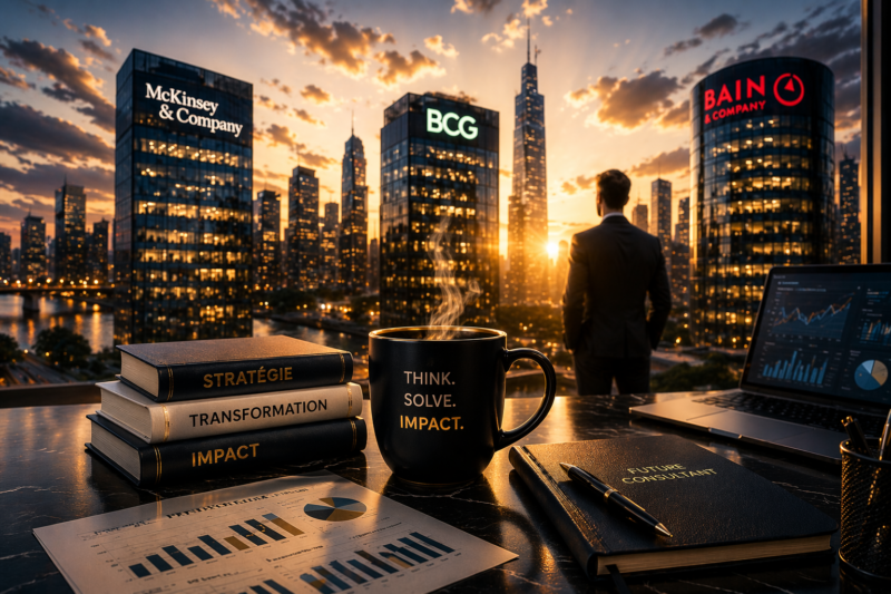 Chaque année, des milliers d’étudiants issus des meilleures écoles rêvent d’intégrer les cabinets les plus prestigieux du conseil en stratégie. Très peu y parviennent. Non pas par manque d’ambition. Mais parce que les attentes sont élevées. Les processus de sélection exigeants. Et la concurrence particulièrement intense. Les MBB (McKinsey & Company, Boston Consulting Group et Bain & Company) incarnent ce niveau d’excellence. Ils conseillent les dirigeants des plus grandes entreprises et institutions. Ils interviennent sur des décisions stratégiques majeures. Et ils offrent des trajectoires de carrière parmi les plus rapides du marché. Comprendre leur fonctionnement, leurs attentes et leur processus de recrutement est une étape clé pour tout étudiant visant une carrière en conseil. Que signifie MBB ? Le Big Three du conseil en stratégie Le terme “MBB” désigne les trois cabinets historiquement considérés comme les leaders mondiaux du conseil en stratégie : McKinsey & Company Boston Consulting Group Bain & Company Ils se distinguent par leur exposition aux plus hauts niveaux décisionnels, la complexité des problématiques traitées et leur capacité à attirer et former les meilleurs talents. À la différence des Big 4 ou des cabinets spécialisés, les MBB interviennent principalement sur des sujets de stratégie globale, de transformation et de décisions à fort impact. Présentation des trois cabinets MBB McKinsey & Company : le leader historique Fondé en 1926, McKinsey & Company est souvent considéré comme le cabinet de conseil en stratégie le plus influent au monde. Présent dans plus de 60 pays, il accompagne depuis près d’un siècle les dirigeants des plus grandes entreprises, institutions financières et organisations publiques sur leurs décisions les plus critiques. Le cabinet intervient principalement au plus haut niveau des organisations sur des problématiques de transformation à grande échelle : redéfinition de stratégie, restructuration, amélioration de la performance, ou encore adaptation à des ruptures technologiques et économiques majeures. Au-delà de ses missions, McKinsey a profondément façonné le secteur du conseil en stratégie. Le cabinet est à l’origine de nombreux travaux de recherche, publications et méthodologies qui font aujourd’hui référence, contribuant à structurer la manière dont les entreprises abordent leurs enjeux stratégiques. Sa marque repose sur une exigence intellectuelle particulièrement élevée, une approche analytique rigoureuse et une forte culture de l’excellence. Les consultants y sont formés à résoudre des problèmes complexes dans des environnements incertains, avec un niveau d’attente très élevé en matière de structuration, de communication et d’impact. Intégrer McKinsey, c’est évoluer dans un environnement extrêmement stimulant, où la courbe d’apprentissage est rapide, mais où les exigences en termes de performance et d’engagement sont également parmi les plus élevées du marché. Boston Consulting Group : l’innovation stratégique Fondé en 1963, le Boston Consulting Group s’est imposé comme l’un des cabinets les plus influents en matière de stratégie et d’innovation. Présent dans plus de 50 pays, il accompagne les grandes entreprises et institutions sur des problématiques complexes, allant de la définition de stratégies de croissance à la transformation en profondeur des modèles économiques. Le BCG est historiquement reconnu pour sa contribution majeure à la pensée stratégique. Il est notamment à l’origine d’outils devenus incontournables, comme la matrice BCG, et plus largement d’une approche structurée permettant d’analyser des portefeuilles d’activités et d’allouer efficacement les ressources. Cette capacité à formaliser des concepts complexes en frameworks clairs constitue aujourd’hui encore un marqueur fort de son ADN. Le cabinet se distingue par une forte culture analytique, combinée à une orientation croissante vers les enjeux technologiques et data. Il intervient ainsi de plus en plus sur des sujets liés à l’intelligence artificielle, à la transformation digitale et à l’innovation, en s’appuyant sur des expertises internes pointues. Travailler au BCG implique de développer une capacité à structurer rapidement des problématiques complexes, à manipuler des données avec rigueur et à produire des recommandations à forte valeur ajoutée. L’environnement y est exigeant, mais offre une exposition rapide à des enjeux stratégiques de premier plan. Bain & Company : l’impact et l’exécution Fondé en 1973, Bain & Company s’est construit une réputation solide en combinant excellence stratégique et forte orientation vers l’exécution. Présent dans une quarantaine de pays, le cabinet accompagne ses clients non seulement dans la définition de leur stratégie, mais aussi dans sa mise en œuvre concrète, avec un objectif clair : générer des résultats mesurables. Bain est particulièrement reconnu pour son expertise en Private Equity, où il intervient régulièrement aux côtés de fonds d’investissement sur des missions de due diligence stratégique, d’identification d’opportunités de croissance ou de création de valeur post-acquisition. Cette proximité avec les investisseurs renforce son approche pragmatique et orientée impact. La culture du cabinet se distingue également par un fort accent mis sur les équipes et la collaboration. Bain est souvent perçu comme le cabinet le plus “people-oriented” des MBB, avec une attention particulière portée au développement des consultants et à la cohésion interne. Sur le plan des missions, Bain se caractérise par une implication plus poussée dans l’opérationnel que certains de ses concurrents, avec une volonté d’accompagner les clients jusqu’à l’obtention de résultats concrets. Cette approche exige des