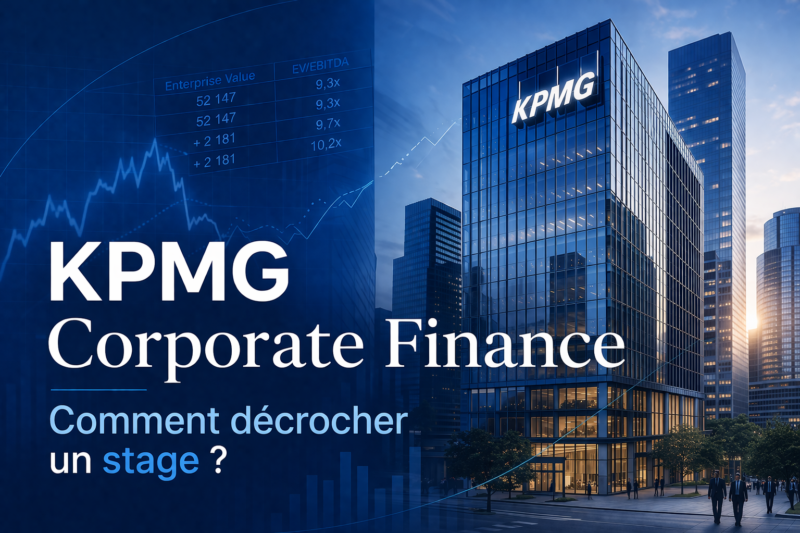 Décrocher un stage chez KPMG Corporate Finance est un objectif attractif pour de nombreux étudiants en finance d’entreprise. Et on comprend pourquoi. KPMG France met en avant des activités de conseil en M&A, levée de fonds, modélisation financière, dette et transaction services, dans un environnement qui combine exposition transactionnelle, diversité des dossiers et puissance d’une marque reconnue. En parallèle, le cabinet communique aussi activement sur le recrutement d’étudiants, stagiaires et alternants au sein de ses différentes expertises. Pour un étudiant qui vise un stage en finance, la vraie difficulté n’est pas seulement de postuler. C’est de comprendre où l’on met les pieds, de savoir quel métier viser, puis de construire une candidature crédible et une préparation d’entretien solide. C’est exactement ce que nous allons voir dans cet article. KPMG : un acteur important pour débuter en finance d’entreprise KPMG se présente comme un cabinet d’audit, de conseil, de droit et de fiscalité, avec une organisation pluridisciplinaire au service de grands groupes, ETI et PME. Sur les sujets de transactions, le cabinet regroupe plusieurs expertises sous l’univers Deal Advisory / Strategy & Transactions, avec notamment des offres en Corporate Finance, Transaction Services, Deal Strategy et Évaluation & modélisation financière. Pour un stagiaire, cela change beaucoup de choses. Travailler dans un tel environnement permet de se familiariser avec plusieurs briques de la finance d’entreprise : analyse financière, compréhension des transactions, valorisation, préparation de livrables, logique de process et contact avec des professionnels de haut niveau. C’est souvent ce mélange entre technicité et variété des missions qui rend un stage chez KPMG Corporate Finance particulièrement formateur. Quels métiers retrouve-t-on chez KPMG Corporate Finance ? Quand on parle de KPMG Corporate Finance, il faut éviter de réduire le sujet au seul M&A. En pratique, plusieurs métiers gravitent autour de cet univers. Voici les principaux. Transaction Services Le Transaction Services est l’activité de due diligence financière réalisée dans le cadre d’une opération de M&A.En pratique, les équipes TS passent en revue les comptes d’une entreprise pour identifier les principaux risques financiers, retraiter certains éléments comptables et normaliser les grands agrégats de performance. L’objectif est de donner aux parties prenantes une vision plus fiable de la cible et de produire (sell-side) ou challenger (buy-side) un rapport de due diligence financière, qui pourra servir de base aux discussions sur le prix et les conditions de la transaction. M&A / Lead Advisory Le M&A correspond à l’activité de conseil sur les opérations de cession, d’acquisition ou de levée de fonds.Le rôle des équipes M&A est d’accompagner le client tout au long du process, depuis la préparation de l’opération jusqu’à son exécution. Elles interviennent notamment pour structurer le process, préparer la documentation marketing, identifier des acheteurs ou des cibles pertinentes, coordonner les échanges avec les différentes parties et accompagner les négociations jusqu’au closing. En stage, cela se traduit souvent par des recherches sectorielles, des analyses de sociétés, la préparation de teasers ou d’information memorandums, des benchmarks de valorisation, ou encore le suivi opérationnel du process. Autrement dit, le M&A est le métier le plus directement exposé à la gestion d’une transaction : il faut à la fois comprendre les enjeux financiers, savoir présenter une entreprise et être capable de faire avancer un process avec rigueur. Valuation et modélisation financière La Valuation correspond à l’activité d’évaluation d’entreprise, d’actifs ou de titres. Les équipes spécialisées cherchent à déterminer la valeur d’une société ou d’un actif dans différents contextes : transaction, réorganisation, contentieux, reporting financier ou encore problématiques comptables et fiscales. Leur rôle consiste à produire une analyse financière robuste, fondée sur plusieurs approches de valorisation. Les missions portent généralement sur l’analyse du business model, la revue du business plan, la construction de modèles financiers et l’application de méthodes comme le DCF, les comparables boursiers ou les transactions comparables. Le livrable prend souvent la forme d’un rapport de valorisation, d’un modèle financier détaillé ou d’une note d’analyse destinée à appuyer une décision stratégique, comptable ou transactionnelle. Pourquoi viser un stage chez KPMG Corporate Finance ? Premier avantage : la courbe d’apprentissage. En stage, tu peux rapidement monter en niveau sur des sujets très concrets : analyse financière, Excel, PowerPoint, structuration d’un raisonnement, compréhension d’un process transactionnel. Deuxième avantage : la variété des dossiers. Les pages officielles de KPMG insistent sur la diversité des clients et des situations traitées, avec des interventions en France et à l’international, au service de grands groupes, PME, ETI, entités publiques et fonds d’investissement selon les équipes concernées. Troisième avantage : la marque sur le CV. Sans prétendre qu’un stage chez KPMG “garantit” la suite, il est raisonnable d’en déduire qu’une expérience réussie dans un environnement aussi structuré est un signal fort pour de futurs recruteurs en finance d’entreprise. Cette idée repose sur une inférence logique à partir du positionnement du cabinet et de la profondeur de ses expertises. Comment décrocher un stage chez KPMG Corporate Finance ? La première étape est de clarifier ton projet. Beaucoup d’étudiants disent vouloir “faire de la corporate finance” sans pouvoir expliquer la différence entre TS, M&A et Valorisation. Pourtant, cette