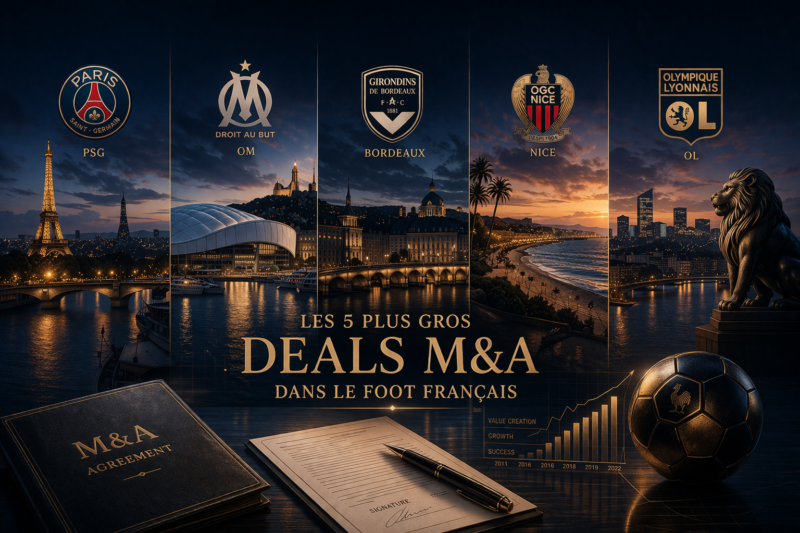 Le football français n’a pas toujours occupé le devant de la scène lorsqu’on parle de grandes opérations capitalistiques. Pendant longtemps, les regards se tournaient surtout vers la Premier League, la Serie A ou la Liga. Pourtant, la Ligue 1 a elle aussi connu plusieurs transactions majeures au cours des quinze dernières années. Certaines ont transformé durablement un club. D’autres ont surtout révélé les limites d’un montage ou d’une stratégie post-acquisition. Toutes, en revanche, racontent quelque chose d’essentiel sur l’évolution du football français. Car derrière un rachat de club, il n’y a jamais seulement un changement d’actionnaire. Il y a une lecture du potentiel économique, une vision du sport, une stratégie de marque, un plan de financement, une gouvernance à rebâtir et, souvent, une dimension politique ou symbolique. Un club de football n’est pas une entreprise comme les autres. Mais il n’échappe plus aux logiques du M&A : contrôle, valorisation, due diligence, financement, closing, puis exécution post-deal. Voici cinq transactions emblématiques impliquant des clubs français, présentées dans l’ordre chronologique. 2011 – PSG racheté par QSI : le deal qui a changé l’échelle du foot français En 2011, le Paris Saint-Germain change de dimension. Qatar Sports Investments, plus connu sous le nom de QSI, rachète 70% du capital du club, alors détenu principalement par Colony Capital. Quelques mois plus tard, QSI monte à 100% en rachetant le solde du capital. Reuters a rapporté qu’en 2012, cette seconde étape valorisait le club autour de 100 millions d’euros. Les parties prenantes sont assez lisibles. Côté acheteur, QSI arrive avec des moyens financiers considérables et une ambition très supérieure à celle des actionnaires précédents. Côté vendeurs, Colony Capital et Butler Capital Partners se retirent d’un actif dont le potentiel était réel, mais encore loin d’être pleinement exploité. Reuters indiquait d’ailleurs que Colony cherchait déjà à faire entrer de nouveaux investisseurs depuis plusieurs mois avant l’opération. Sur le plan des conseils M&A, les sources publiques ouvertes ne permettent pas d’identifier avec certitude une banque mandatée sur la transaction. Le plus rigoureux est donc de rester sobre : les conseils financiers n’ont pas été clairement communiqués publiquement. Pourquoi ce deal est-il si important ? Parce qu’il ne transforme pas seulement le PSG, mais tout l’équilibre économique du football français. QSI n’achète pas seulement un club de football. Il prend le contrôle d’un actif premium situé dans la capitale française, avec un potentiel immense en matière de sponsoring, de visibilité internationale, de merchandising et d’image. En 2011, le PSG n’est pas encore la marque mondiale qu’il deviendra ensuite. C’est précisément ce qui rend l’opération fascinante : l’acheteur paie moins une réalité économique qu’une capacité de transformation. L’histoire derrière le deal est presque plus marquante que le deal lui-même. L’arrivée de QSI ouvre un cycle totalement nouveau : investissements sportifs massifs, ambition européenne, professionnalisation accélérée de la structure et changement complet de perception du club. Peu de transactions dans le sport français ont eu un effet aussi structurant. L’anecdote la plus parlante tient à la création de valeur. Au début des années 2010, le PSG se valorise encore à un niveau relativement modeste par rapport à ce qu’il deviendra ensuite. Plus d’une décennie plus tard, QSI ouvre une part minoritaire du capital à Arctos, sur la base d’une valorisation sans commune mesure avec celle du PSG de 2011. Reuters a rapporté en 2023 une prise de 12,5% par Arctos dans une opération fondée sur une valorisation d’environ 4 milliards d’euros. Cela résume parfaitement la logique du deal initial : transformer un grand club en actif mondial. 2016 – McCourt rachète l’OM : un deal à forte charge symbolique En 2016, l’Olympique de Marseille change de propriétaire avec l’arrivée de Frank McCourt, ancien propriétaire des Los Angeles Dodgers. Reuters a rapporté qu’il était entré en négociations exclusives avec Margarita Louis-Dreyfus en août 2016. Le prix exact n’a pas été officiellement détaillé dans les communiqués de l’époque, mais plusieurs médias ont ensuite évoqué un montant autour de 45 à 50 millions d’euros. Les parties prenantes donnent immédiatement au deal une portée particulière. D’un côté, Margarita Louis-Dreyfus cherche une solution de sortie pour un club prestigieux mais difficile à stabiliser économiquement. De l’autre, Frank McCourt arrive avec le profil du propriétaire américain ambitieux, décidé à relancer une institution majeure du football français. Là encore, les banques conseil ne sont pas clairement documentées dans les sources ouvertes de référence. Le plus propre est donc d’indiquer que les conseils financiers n’ont pas été publiquement détaillés. Pour McCourt, la logique du deal est simple à comprendre : l’OM est un club immense, avec une base populaire unique, une histoire exceptionnelle et un potentiel émotionnel et commercial considérable. Reuters soulignait qu’il souhaitait rendre au club ses “anciennes gloires”. Pour la vendeuse, la transaction répond à une logique de sortie après plusieurs années à porter un actif lourd, exigeant et structurellement complexe. Ce qui rend l’opération particulièrement intéressante, c’est sa charge symbolique. À Marseille, un rachat de club n’est jamais seulement une opération financière. C’est aussi un événement politique, médiatique et affectif. Le deal s’accompagne très vite d’un récit ambitieux, celui de l’“OM Champions Project”, qui sert de bannière stratégique au début de l’ère McCourt. L’idée n’es